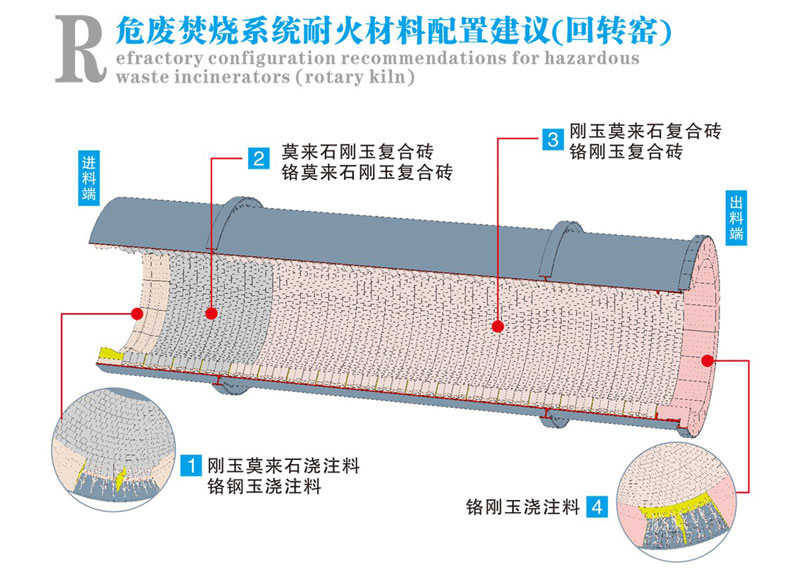 (4)受熱膨脹穩(wěn)定性要好。 回轉(zhuǎn)窯殼體的熱膨脹系數(shù)雖然大于回轉(zhuǎn)窯耐火材料的熱膨脹系數(shù),但是殼體溫度一般都在150~300 ℃左右,而耐火材料承受的溫度一般都在 800 ℃以上,這樣可能會導(dǎo)致耐火材料比回轉(zhuǎn)窯殼體的熱膨脹要大,而容易脫落。